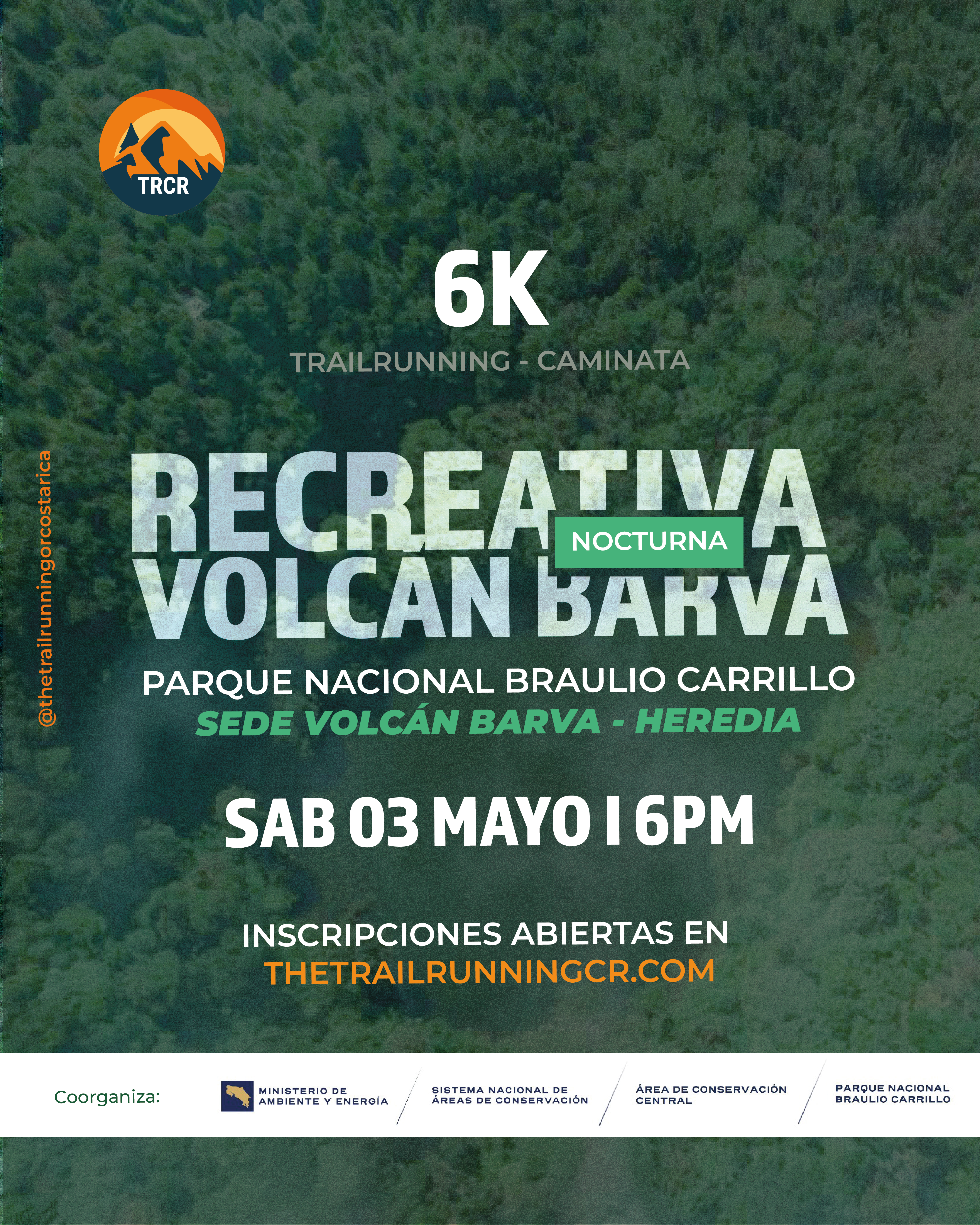 Entreno nocturno recreativo de 6 km en el Parque Nacional Braulio Carrillo, sector Volcán Barva. Subimos al cráter por el sendero Cacho de Venado y regresamos por el camino principal. Salida a las 6:00 p.m, con actividades previas para atletas y acompañantes. Tuvimos ventas en beneficio a la escuela de Sacramento y al comite de la cruz roja de barva. Una experiencia única para fiebres del trail y quienes quieren iniciarse en este deporte.